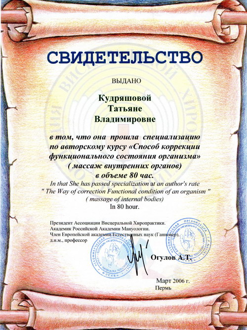Воздействие на внутренние органы посредством надавливания, смещения, сдавливания, вибрации и растяжения с целью восстановления положения и подвижности органов и околоорганных пространств.
